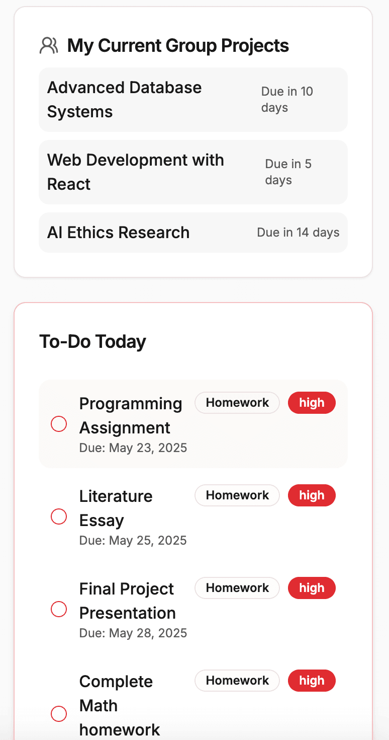 Stay Organized: One calendar for all tasks—school, personal, and group work.