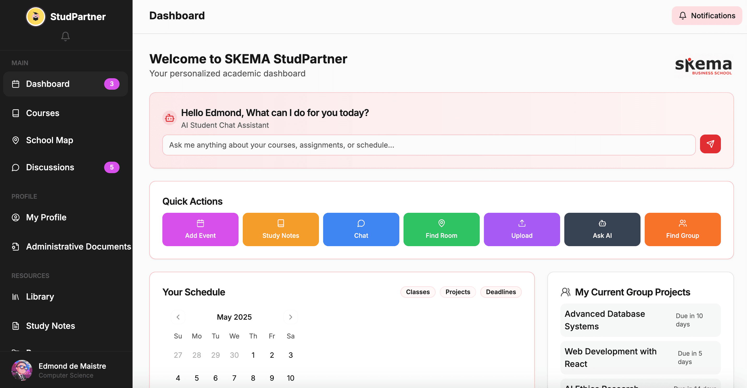 Get a sneak peek at StudPartner’s personalized dashboard, set to launch soon, offering quick actions and a tailored schedule for School students.